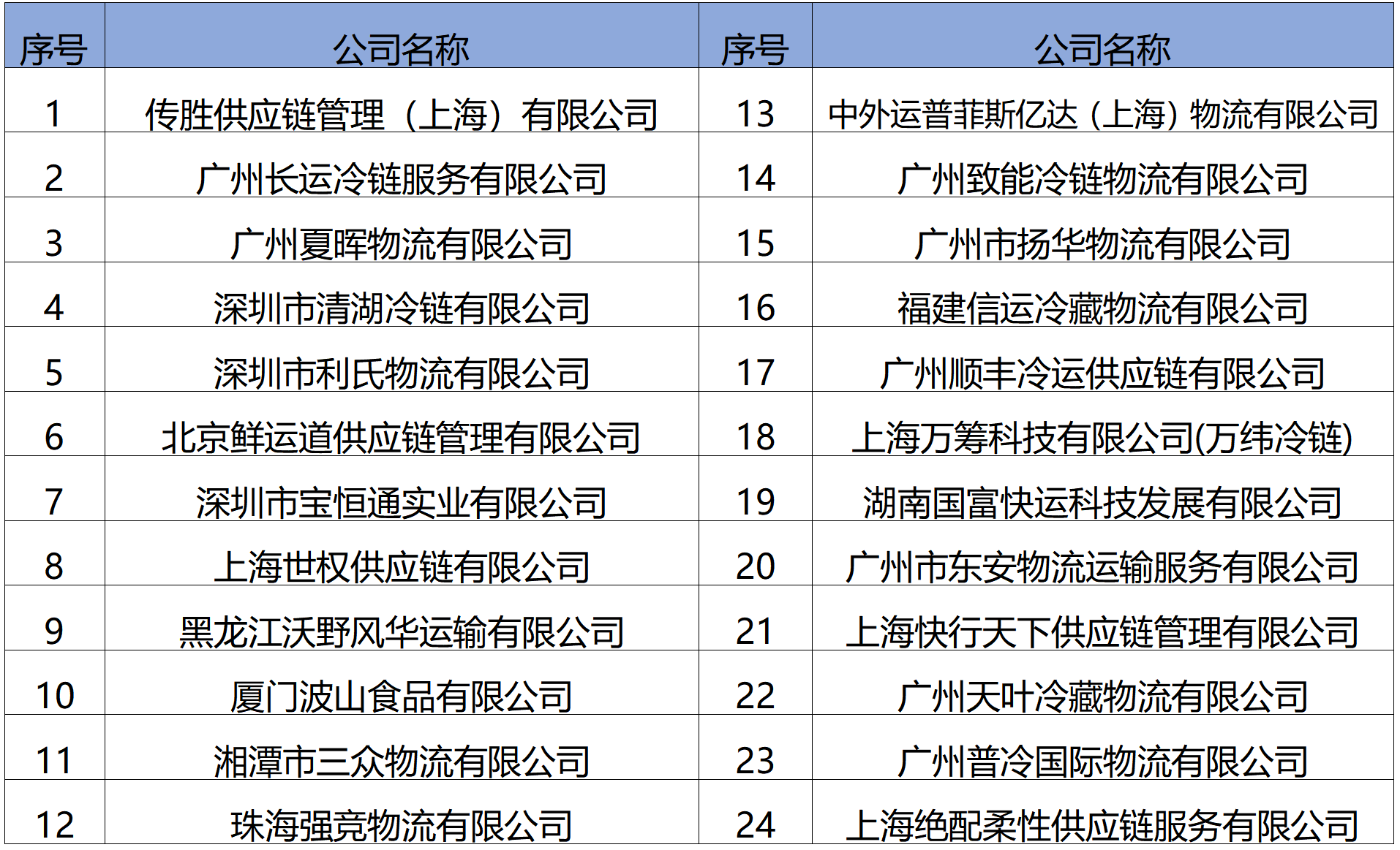 據(jù)介紹,本次國(guó)內(nèi)整車(chē)招標(biāo)項(xiàng)目,是集團(tuán)倉(cāng)儲(chǔ)物流中心實(shí)施改革以來(lái),第二次面向全社會(huì)免費(fèi)公開(kāi)招標(biāo),招標(biāo)自6月5日在國(guó)聯(lián)水產(chǎn)集團(tuán)官網(wǎng)、國(guó)聯(lián)水產(chǎn)集團(tuán)微信公眾號(hào)、中國(guó)物流與采購(gòu)聯(lián)合會(huì)冷鏈物流專(zhuān)業(yè)委員會(huì)、中國(guó)物流招標(biāo)網(wǎng)、凍品攻略、海鮮指南等主流媒體官網(wǎng)發(fā)布招標(biāo)資格預(yù)審公告后,得到了業(yè)內(nèi)極大的響應(yīng),至6月20日資格預(yù)審報(bào)名截止,共收到來(lái)自全國(guó)各地包括順豐集團(tuán)、廣州夏暉、中外運(yùn)普菲斯、傳勝供應(yīng)鏈、廣州普冷國(guó)際、快行天下等知名企業(yè)在內(nèi)的共57家投標(biāo)申請(qǐng)企業(yè)遞交的投標(biāo)材料,本次資格預(yù)審的材料無(wú)論是從資料的接收、保管到拆封,都采取了嚴(yán)格監(jiān)管和保密措施。經(jīng)過(guò)資格預(yù)審委員會(huì)認(rèn)真、嚴(yán)謹(jǐn)?shù)膶徍怂衅髽I(yè)的各項(xiàng)資質(zhì)及相關(guān)材料,最終評(píng)選出24家合格的入圍名單(見(jiàn)下圖公示,排名不分先后)。