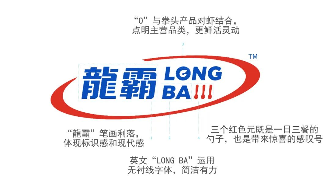 三個紅色的視覺元素,既是代表一日三餐的勺子,也是帶來無數驚喜和感動的感嘆號,寓意龍霸品牌為消費者的日常生活而銳意創新、不懈進取的決心。