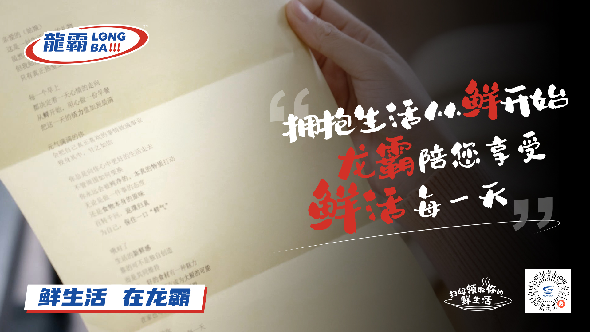 為了更好地闡釋品牌定位理念,近日,我們?nèi)W(wǎng)首發(fā)龍霸品牌宣傳片《鮮·生活指南》,提出“擁抱生活,從鮮開始”的生活主張,精準(zhǔn)對(duì)話目標(biāo)消費(fèi)人群,和消費(fèi)者們一起重拾生活儀式感。